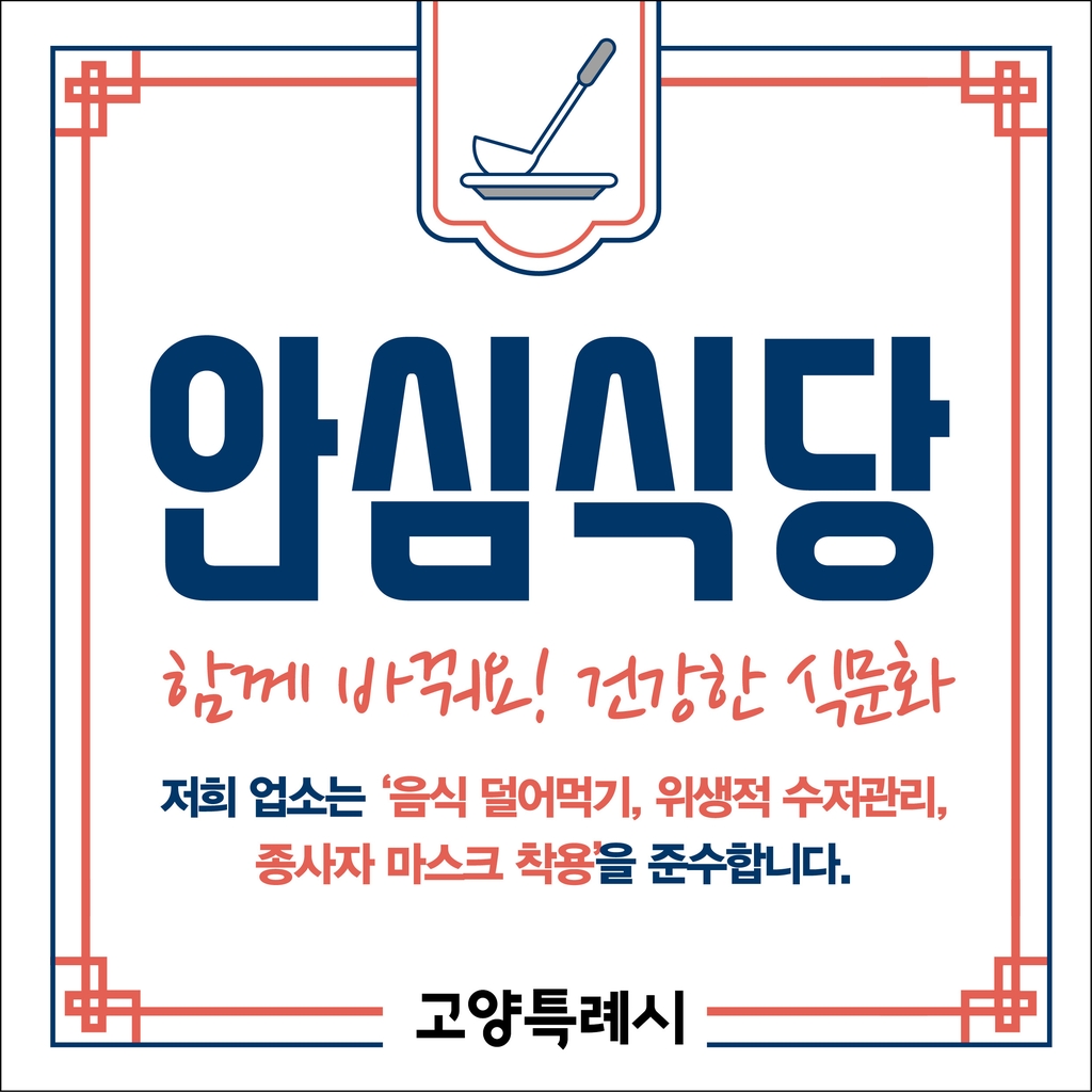 (고양=연합뉴스) 황대일 기자 = 청결 외식 문화를 실천하는 음식점에 대해 지방자치단체가 인증하는 '안심식당' 30곳이 올해 경기 고양시에서 추가로 지정된다.