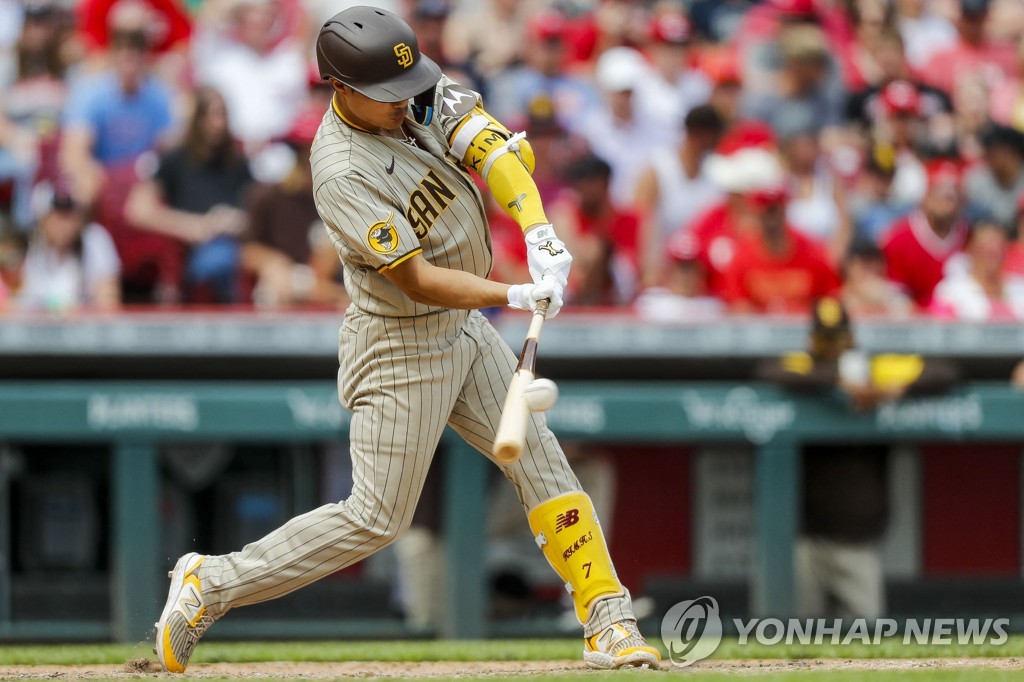 김하성은 2일(한국시간) 미국 오하이오주 신시내티의 그레이트아메리칸볼파크에서 신시내티 레즈와 치른 미국프로야구 메이저리그(MLB) 방문 경기에 1번 타자 2루수로 출전해 5타수 1안타를 치고 2득점을 올렸다.