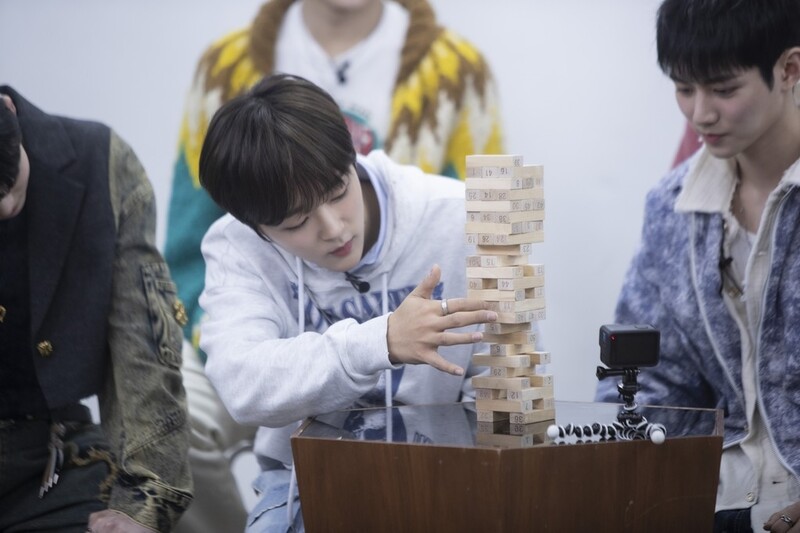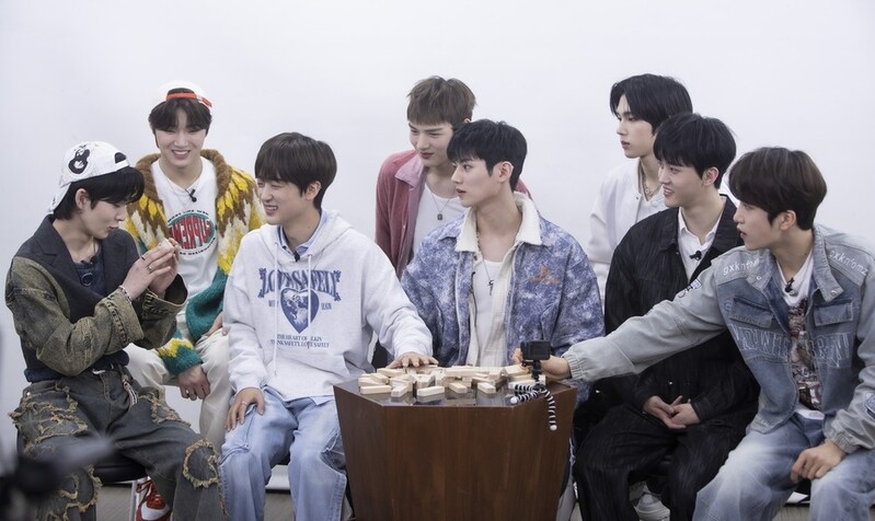 ▲ 보드게임을 즐기는 루네이트 (서울=연합뉴스) 유준하 인턴기자 = K팝 남성 아이돌그룹 루네이트가 지난 26일 서울 종로구 수송동 연합뉴스 사옥에서 인터뷰에 앞서 포즈를 취하고 있다. 2024.3.26