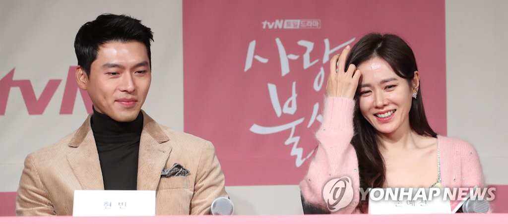 | ▲ 현빈-손예진, 열애 2년 만에 오늘 결혼 (서울=연합뉴스) 지난 2019년 12월 서울 종로구 포시즌스호텔에서 열린 tvN 드라마 '사랑의 불시착' 제작발표회에서 두 사람이 포즈를 취하고 있는 모습. [연합뉴스 자료사진] |
