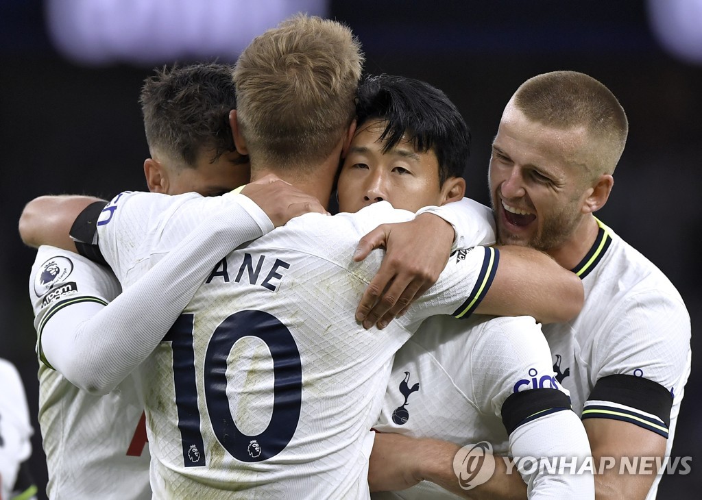 ▲ 해리 케인 등 동료들 축하받는 손흥민 [EPA=연합뉴스]