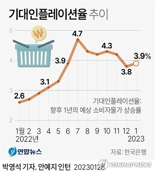 | ▲ 1월 기대인플레 3.9%로 전월보다 0.1%p↑…공공요금 인상 영향 [연합뉴스 자료사진] |