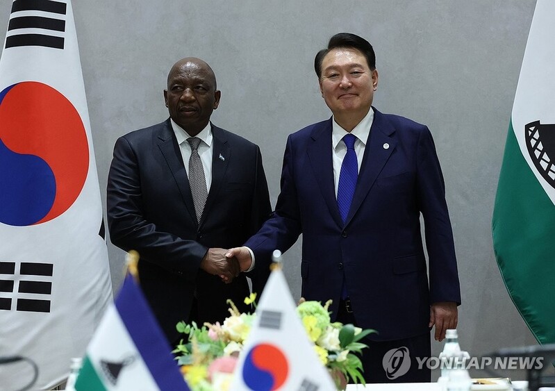Yoon also held a summit with Prime Minister Sam Matekane of Lesotho and promised to help boost the country's agricultural productivity by exploring possible cooperation projects and providing farming machinery.