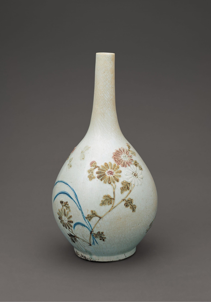 훗날 정해진 명칭은 '백자 청화철채동채초충문 병', 1997년 지정된 우리나라 국보다.
