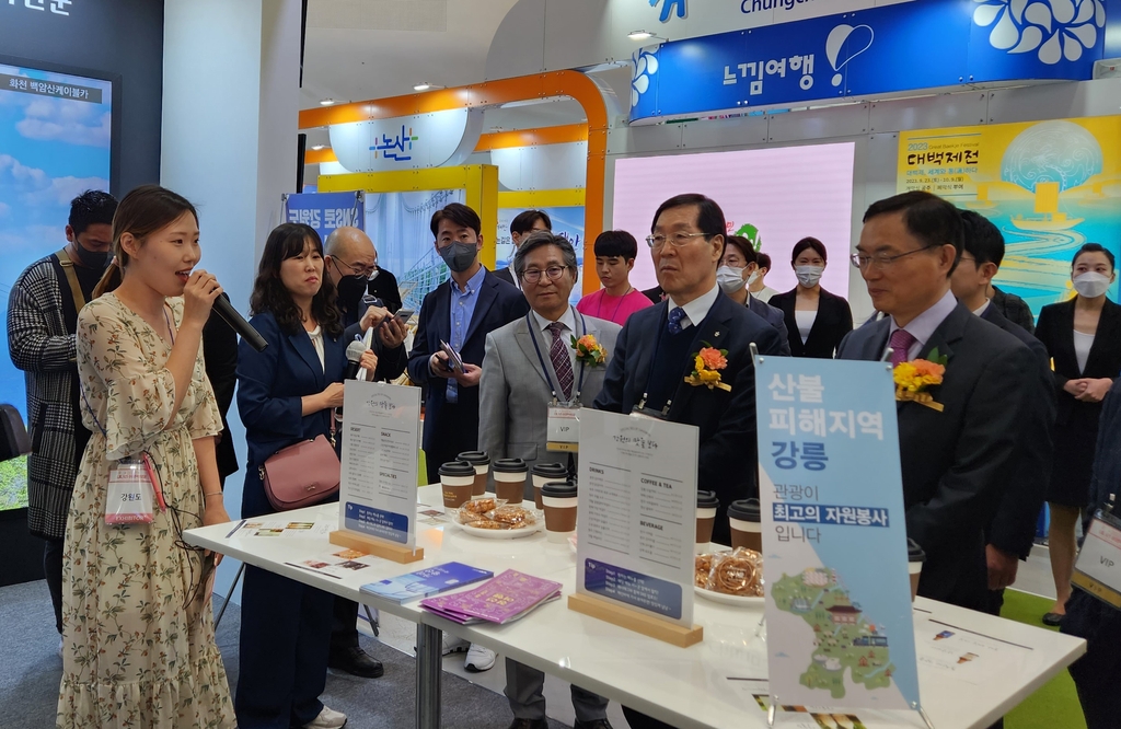 시는 현재 서울 동대문디자인플라자에서 문화체육관광부 주최로 진행되는 '2023 내나라 여행박람회'에 참가해 '산불 피해지역 강릉, 관광이 최고의 자원봉사입니다'라는 배너기를 걸고 행사 참가자들에게 강릉 관광을 적극적으로 홍보하고 있다.