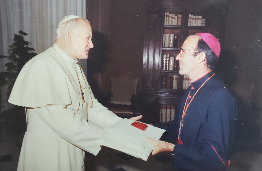 | ▲ 교황 요한 바오로 2세와 두봉 주교 [두봉 주교 보유 사진 재촬영] |