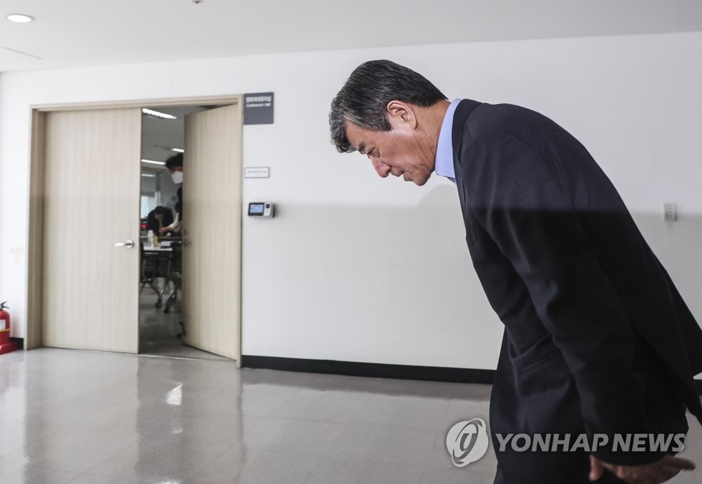 ▲ 이용관 부산국제영화제 이사장 이용관 부산국제영화제 이사장이 26일 임시총회에 앞서 사퇴 입장을 밝혔다. 사진은 5월 열린 임시 이사회에 참석하기 위해 회의실로 입장하는 모습 [자료사진]