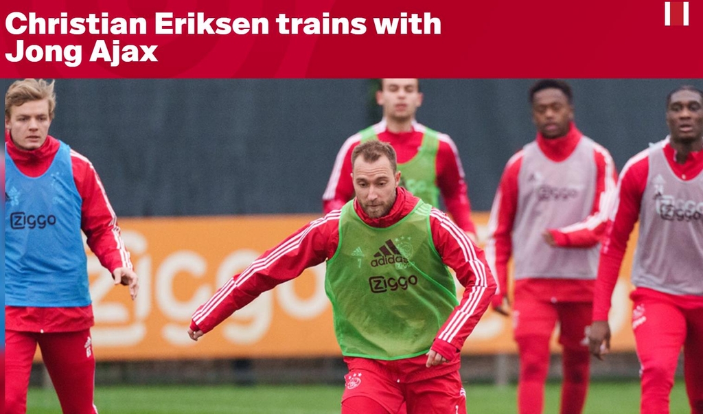 아약스 구단은 25일(현지시간) 공식 채널을 통해 에릭센이 2군 팀에서 훈련하고 있다고 밝혔다. 아약스는 "에릭센이 새로운 클럽을 찾을 때까지 몸 상태를 유지하도록 훈련할 것"이라고 전했다.