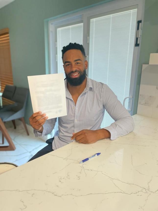 | ▲ 계약한 뒤 웃는 kt wiz 새 외인 타자 헨리 라모스 kt wiz의 새 외국인 타자 헨리 라모스가 계약서에 사인한 뒤 웃고 있다. [kt wiz 제공. 재배포 및 DB 금지] |