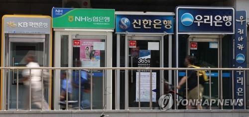 ▲ This undated file photo shows cash machines by major banks set up in Seoul. (Yonhap)