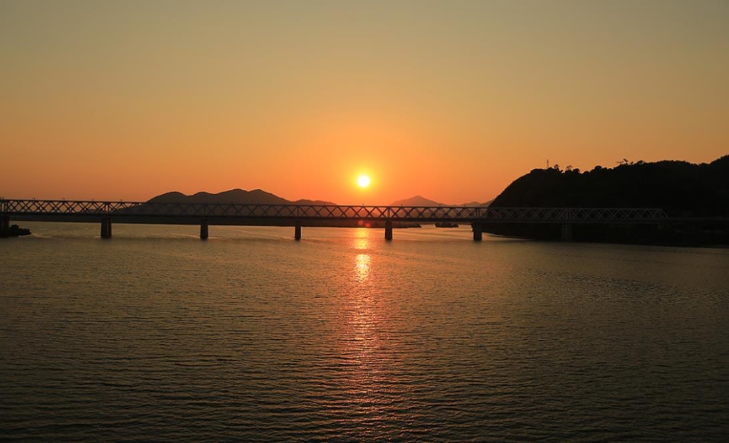 | ▲ 김해 낙동강 철교 전망대에서 바라본 일몰 [김해시 공식 블로그 캡처] |