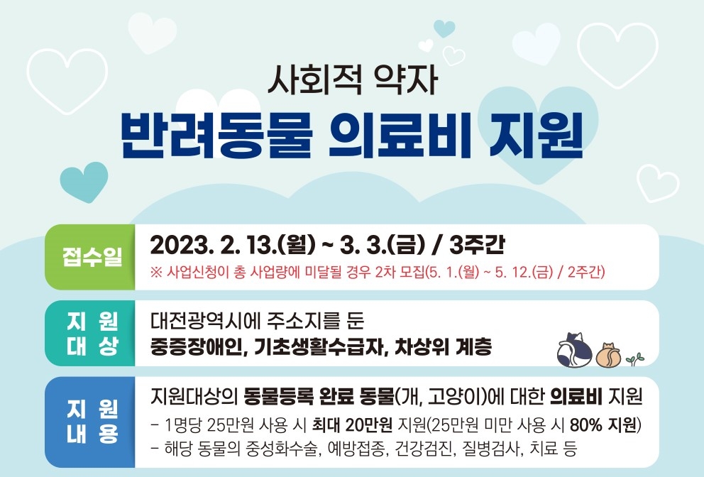 대전시, 사회적 약자 반려동물 의료비 20만원까지 지원