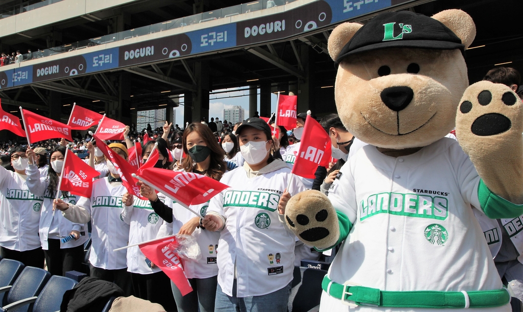 ▲ 스타벅스 코리아가 2일 프로야구 개막과 함께 창원NC파크에 '스타벅스 창원NC파크R점'을 개점했다고 3일 밝혔다. 스타벅스 코리아는 이를 기념해 해당 지역에서 근무하는 파트너(매장 직원)들을 초대해 신세계그룹 프로야구단 SSG랜더스 경기를 응원했다. (서울=연합뉴스)