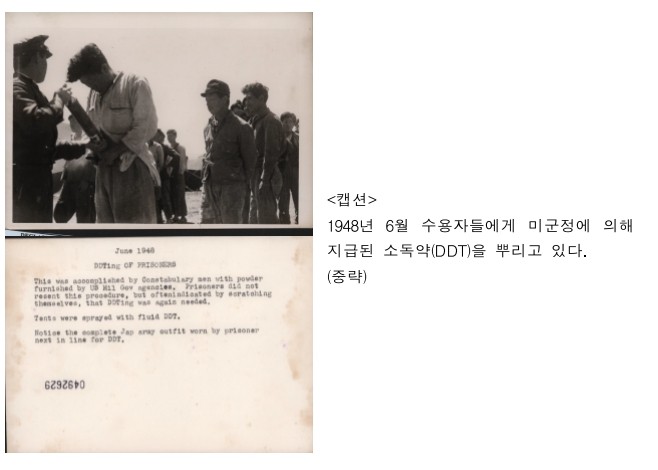 | ▲ 제주4·3 당시 수용자들에게 소독약을 뿌리는 장면(미군 촬영) [제주4·3평화재단 제공. 재판매 및 DB 금지] |