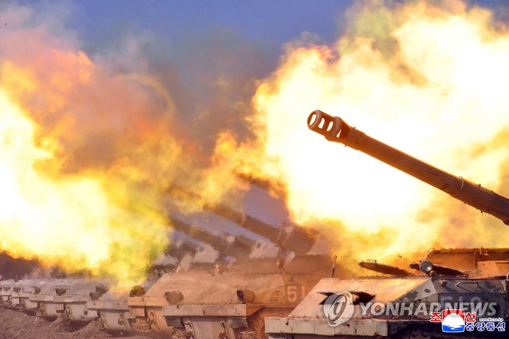 | ▲ An artillery fire competition is under way on Nov. 6, 2021, in this photo released by North Korea's official Korean Central News Agency the next day. (For Use Only in the Republic of Korea. No Redistribution) (Yonhap) |