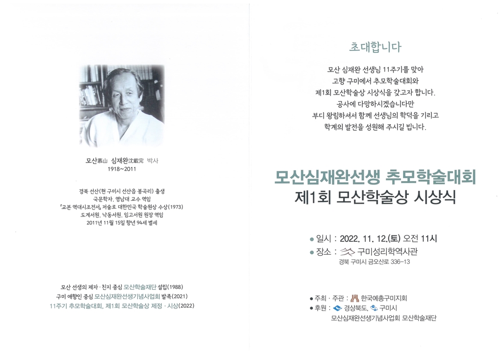 | ▲ 행사 안내 [모산심재완선생기념사업회·모산학술재단 제공. 재판매 및 DB 금지] |
