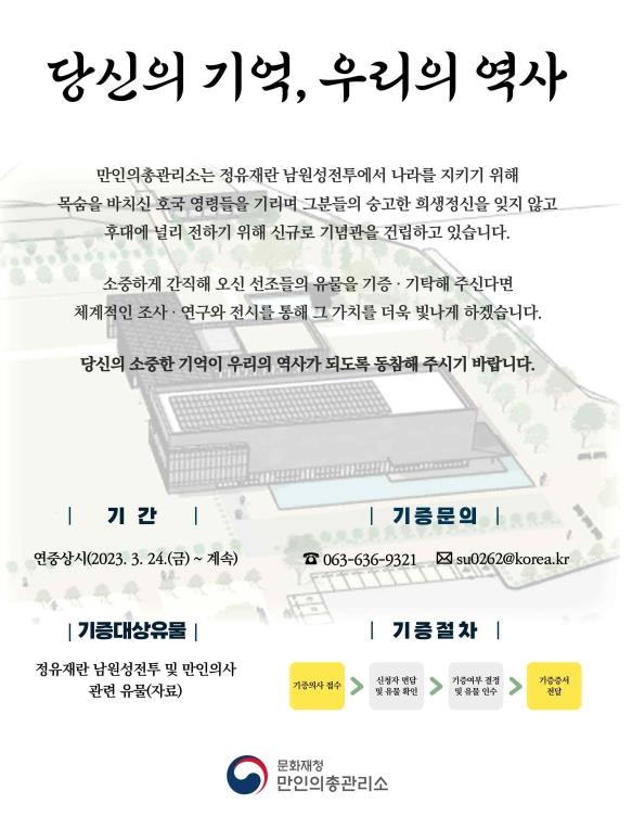 이번 행사에서는 남원성 전투와 만인의사 관련 유물을 기증·기탁할 수 있다.
