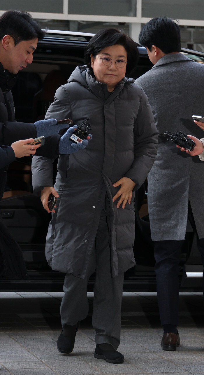 Lee Hye-hoon, the nominee for the minister for planning and budget, arrives at her temporary office in Seoul on Jan. 6, 2026, to prepare for her parliamentary confirmation hearing. (Yonhap)