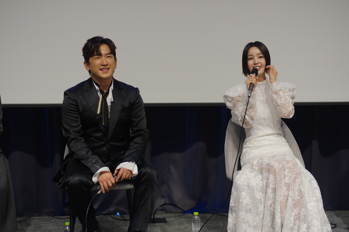 South Korean singer Nam Kyu-ri (R), who stars in the new play "Les Misérables," responds to reporters' questions during a publicity event in Seoul on Oct 30, 2024. The play will run from Nov. 21 to Nov. 24. (Yonhap)