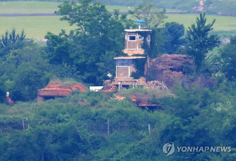 | ▲ This June 7, 2024, file photo taken from South Korea's Gyeonggi Province shows a North Korean guard post within the Demilitarized Zon, separating the two Koreas. (Yonhap) |