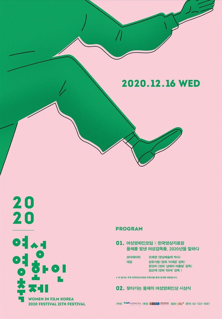 '2020 여성영화인축제'의 토크 프로그램인 '올해를 빛낸 여성 감독들, 2020년을 말하다'에는 수상자인 강유가람, 윤단비, 임선애 감독이 참여한다.