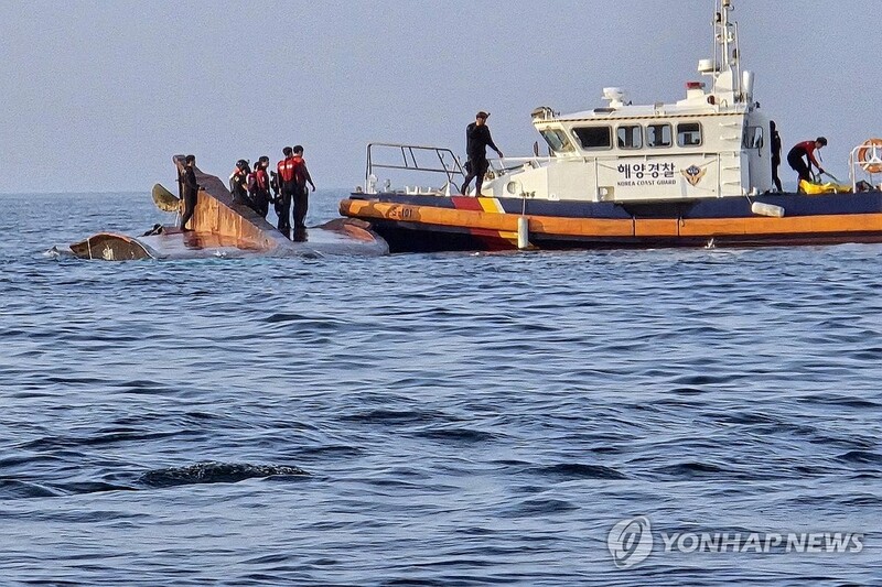 | ▲ A photo, provided by the Mokpo Coast Guard Station, shows authorities searching for the missing after a fishing boat was capsized in waters northeast of Gageo Island off Mokpo, 309 kilometers southwest of Seoul, on June 13, 2024. (PHOTO NOT FOR SALE) (Yonhap) |