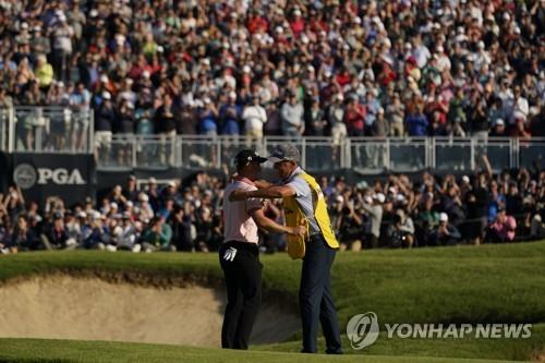 | ▲ 우승 확정 후 캐디와 함께 기쁨을 나누는 토머스 [AP=연합뉴스] |