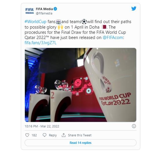 | ▲ 2022 카타르 월드컵 조 추첨 방식을 발표한 FIFA. [FIFA 트위터. 재판매 및 DB 금지] |