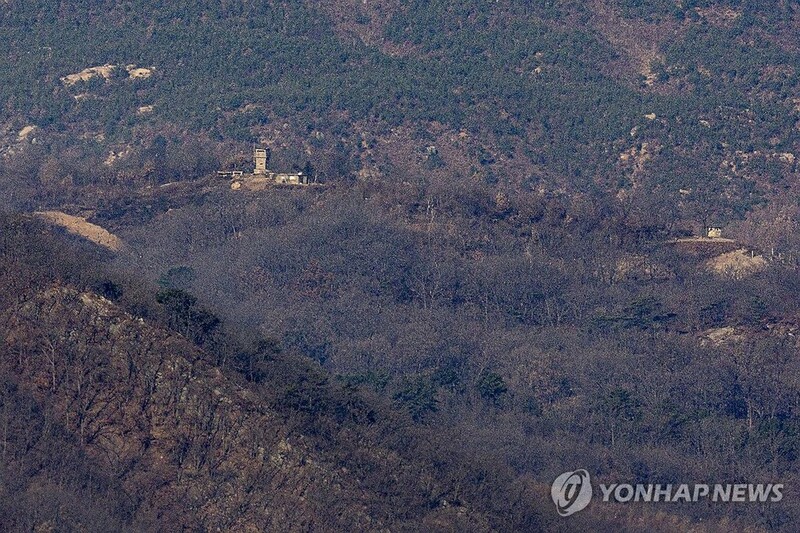 | ▲ This file photo, taken Nov. 28, 2023, from the border county of Yeoncheon, 60 kilometers north of Seoul, shows a North Korean guard post inside the Demilitarized Zone separating the two Koreas. (Yonhap) |