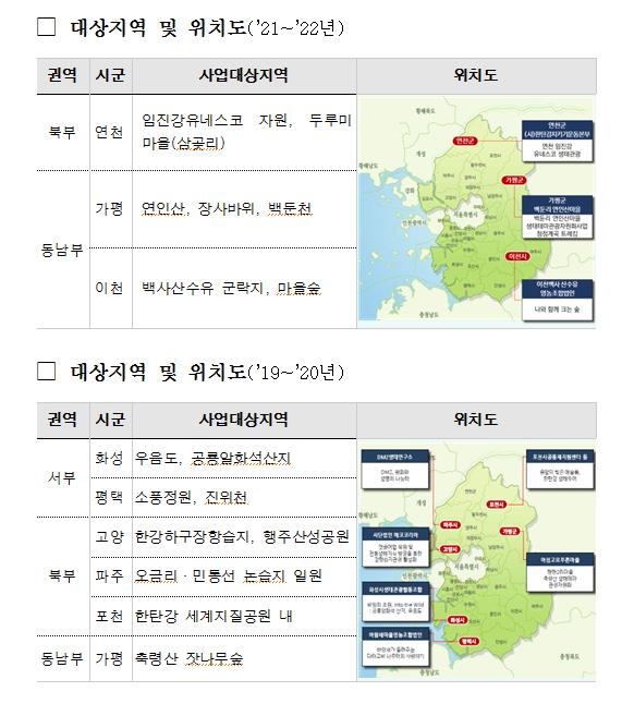 생태관광거점 사업은 2019년부터 ▲ 화성 우음도 ▲ 평택 바람새마을 ▲ 고양 장항습지 ▲ 파주 질오목마을 ▲ 포천 한탄강 생태문화체험센터 ▲ 가평 아침고요푸른마을 등 6곳에서도 진행됐다.