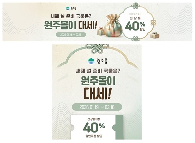 원주몰, 설맞이 기획전…2월 18일까지 전품목 40% 할인쿠폰 발행
