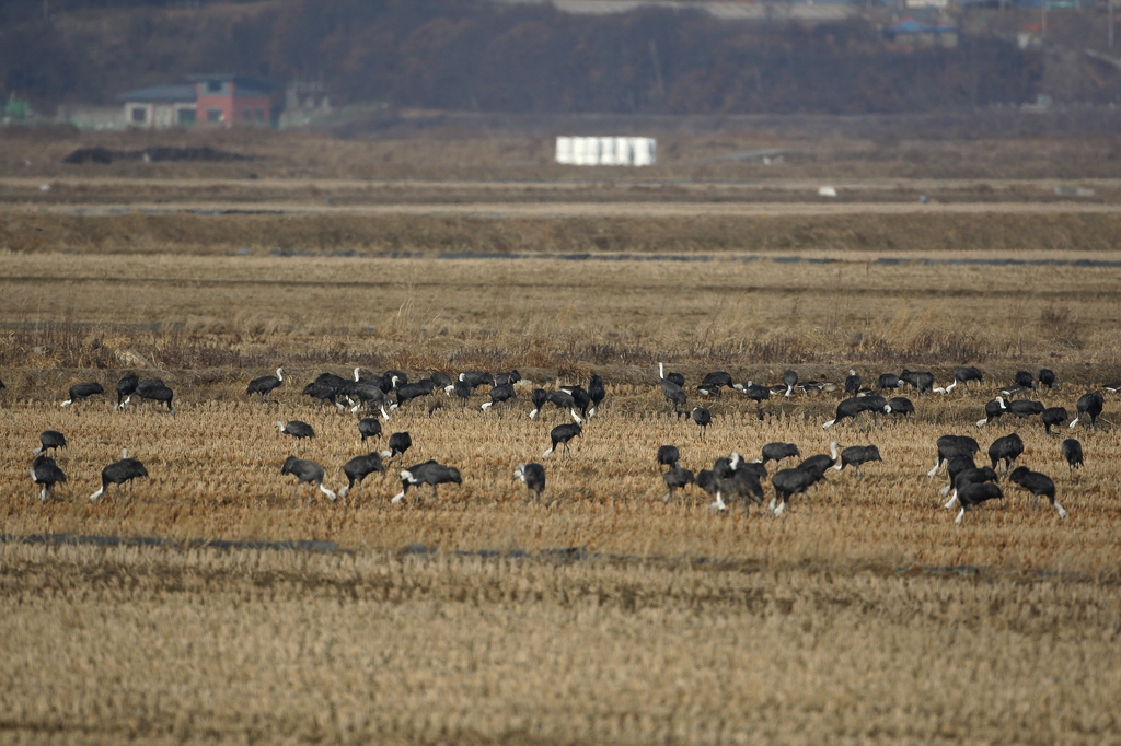 9일 서산버드랜드사업소에 따르면 이달 들어 일본 이즈미에서 월동을 마치고 북상을 시작한 멸종위기종 흑두루미 700여 마리가 천수만 농경지 등을 찾았다. 시간이 지나면서 계속 늘어날 것으로 전망된다.
