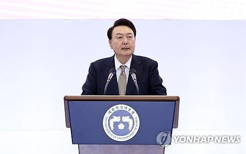 | ▲ President Yoon Suk Yeol gives congratulatory remarks at the opening of a small business owners' convention at the KINTEX exhibition hall in Goyang, just northwest of Seoul, on Oct. 31, 2024. (Pool photo) (Yonhap) |