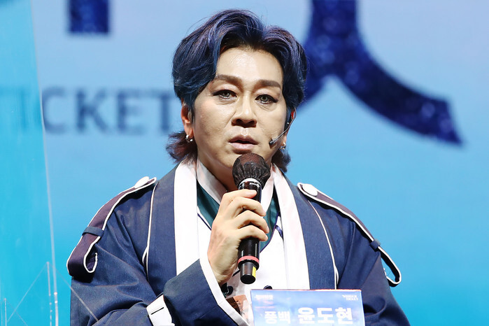 South Korean singer Yoon Do-hyun speaks during a publicity event for the new musical "Wonder Ticket" in Seoul on Aug. 17, 2021. The musical will runs from Sept. 17 to Sept. 26. (Yonhap)