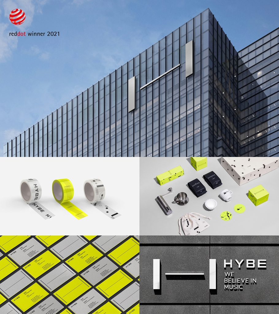 (서울=연합뉴스) 이태수 기자 = 하이브는 기업 이미지(CI·Corporate Identity)가 '2021 레드닷 디자인 어워드'에서 '브랜드 & 커뮤니케이션' 부문 본상을 받았다고 11일 밝혔다.