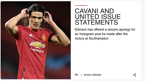 3연승에도 여전히 9위(승점 16)에 머물러 있어 갈 길 바쁜 맨유는 홈페이지에 카바니의 사과문과 구단 성명을 올리며 발 빠르게 대응에 나섰다.
