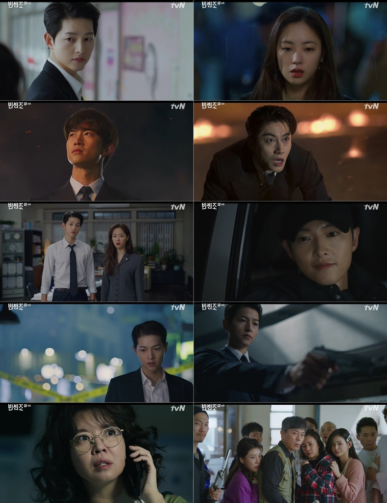 (서울=연합뉴스) 김정진 기자 = 대립 구도를 보이던 빈센조(송중기 분)와 홍차영(전여빈)이 합세하며 본격적인 복수를 시작한 '빈센조'가 시청률 10%를 돌파했다.