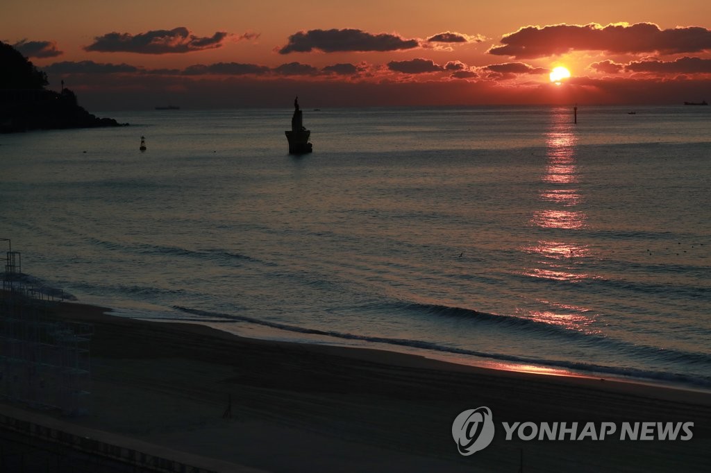 매년 수십만 명의 일출 인파가 모여드는 해운대해수욕장 해변은 출입통제로 적막감이 흘렀다.