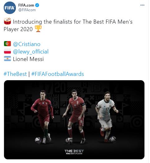 | ▲ FIFA 올해의 선수 최종 후보 3인 [FIFA 트위터 캡처. 재판매 및 DB 금지] |