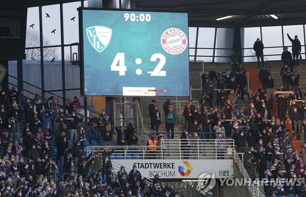 | ▲ 보훔이 4-2로 승리한 바이에른 뮌헨전 결과가 전광판에 나타나 있다. [AP=연합뉴스] |