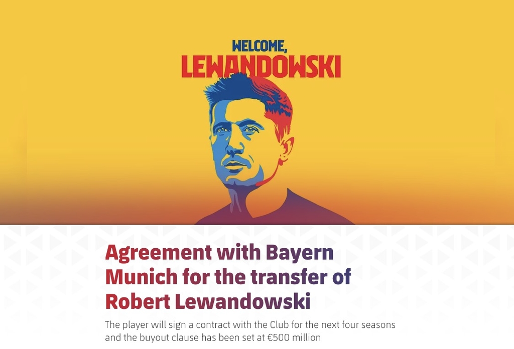 | ▲ 레반도프스키 영입 알리는 FC바르셀로나 홈페이지 [FC바르셀로나 홈페이지 캡처. 재판매 및 DB 금지] |