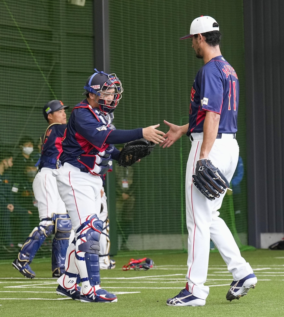 일본 대표팀에 뽑힌 메이저리거 5명 중 유일하게 일본 대표팀 훈련에 조기 합류한 다르빗슈 유(샌디에이고 파드리스)는 18일 불펜 피칭을 35개를 했다.