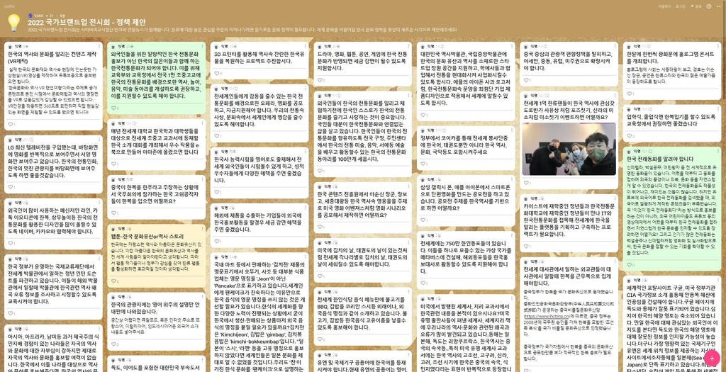 사이버 외교 사절단 반크와 국가기간뉴스통신사 연합뉴스가 주최하는 '2022 국가브랜드업 전시회'의 이벤트 프로그램인 '한류를 우리나라의 문화정책으로 승화하는 제안'에 올라온 톡톡 튀는 아이디어들이다.