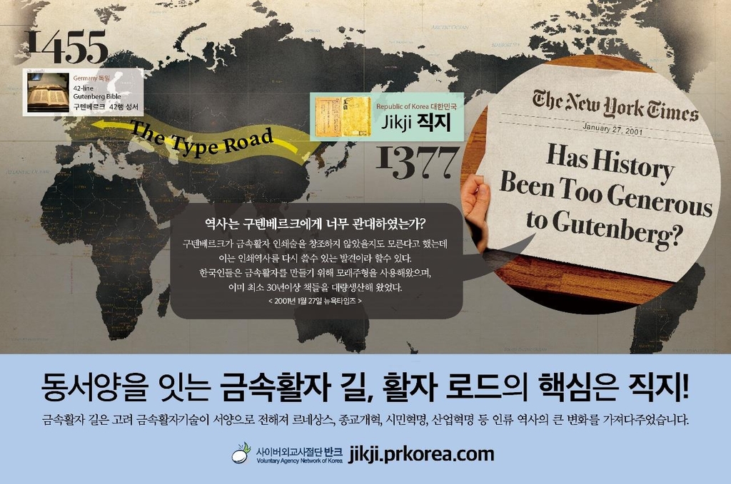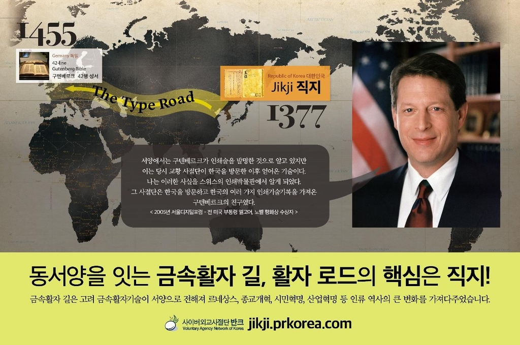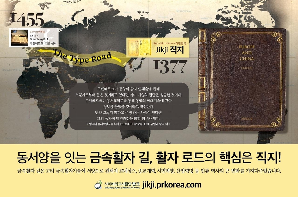 '금속활자 길, 활자 로드를 찾아서'라는 이름의 캠페인으로, 앨 고어 전 미국 부통령, 뉴욕타임스 기사, 존 홉슨 영국 셰필드대 교수, 영국의 역사학자 헨리 허드슨 등이 '직지가 유럽으로 전파됐을 수도 있다'고 주장한 내용을 4장의 포스터에 담았다.