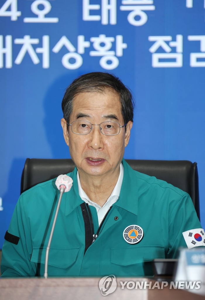 Han made the remarks as he presided over a meeting with related officials to check the country's preparedness, with the typhoon projected to hit the nation's southeastern part later in the day.