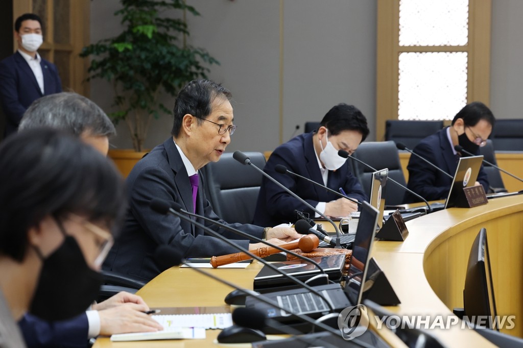 | ▲ Prime Minister Han Duck-soo (3rd from L) presides over a Cabinet meeting at the government complex in Seoul on Oct. 5, 2022. (Yonhap) |
