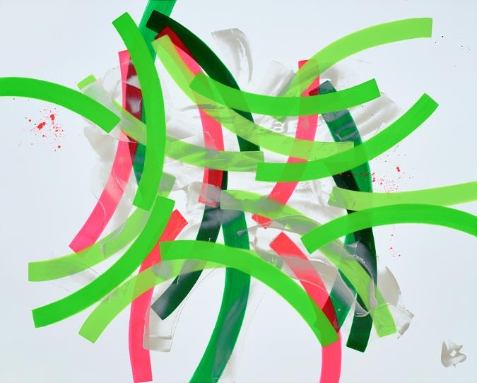 (서울=연합뉴스) 황희경 기자 = 다가온 봄을 알리는 듯 전시장이 녹색(그린)으로 가득하다. 연녹색부터 짙은 녹색까지 다양한 스펙트럼의 녹색띠의 움직임이 경쾌하다.