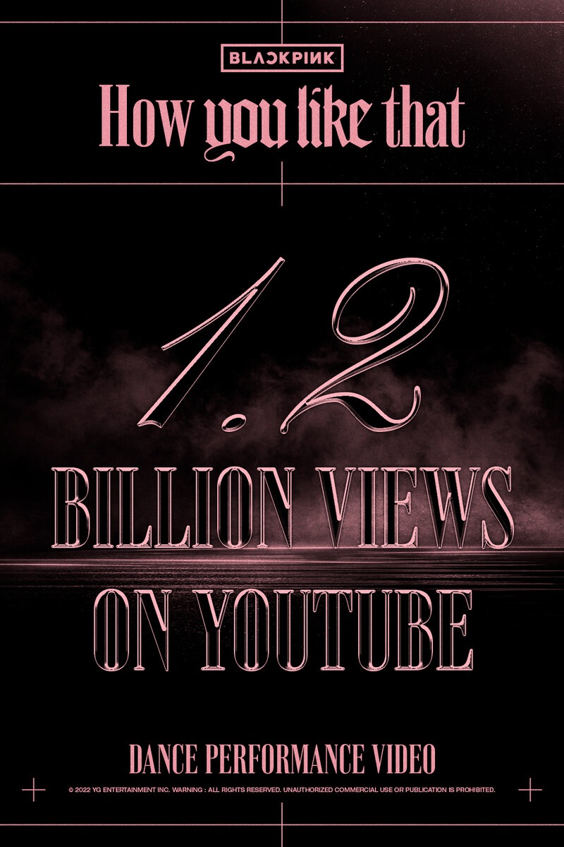 | ▲ This image provided by YG Entertainment on Aug. 12, 2022, celebrates the surpassing of 1.2 billion views by the choreography video for BLACKPINK's "How You Like That." (PHOTO NOT FOR SALE) (Yonhap) |
