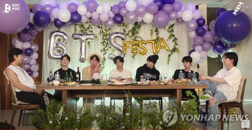 | ▲ 방탄소년단, '찐 방탄회식' 통해 팀 활동 잠정 중단 선언 (서울=연합뉴스) 방탄소년단이 지난 14일 오후 공식 유튜브 채널 방탄TV에서 '찐 방탄회식' 영상을 통해 팀 활동을 잠정 중단한다고 전했다. 사진은 방탄TV '찐 방탄회식' 모습. 2022.6.15 [방탄TV 유튜브 캡처. 재판매 및 DB 금지] photo@yna.co.kr |