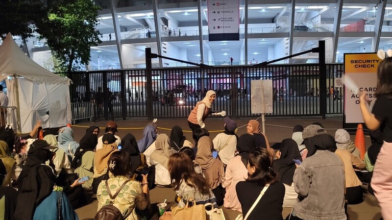 | ▲ "새어 나오는 소리라도 듣자" (자카르타=연합뉴스) 박의래 특파원 = 23일(현지시간) 'SM타운 라이브 2023 자카르타 위드 KB뱅크' 콘서트가 열린 인도네시아 자카르타 겔로라 붕 카르노(GBK) 주 경기장 밖에서 티켓을 구하지 못 한 팬들이 새어 나오는 소리라도 듣겠다며 공연장 밖에서 자리를 잡고 앉아 있다. 2023.9.24. laecorp@yna.co.kr |
